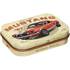 Boîte métallique imprimée. Le couvercle aux coins arrondis s'enclenche et maintient la boîte fermée. A laisser dans la voiture ou à emporter dans votre poche.