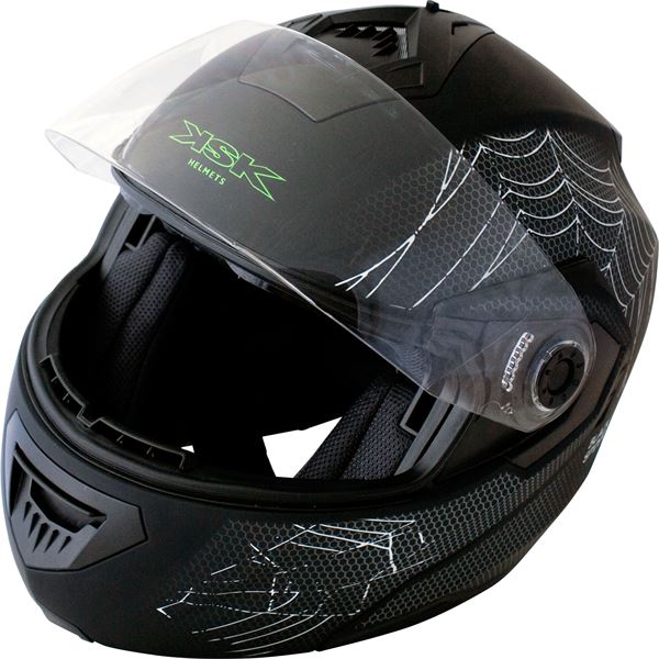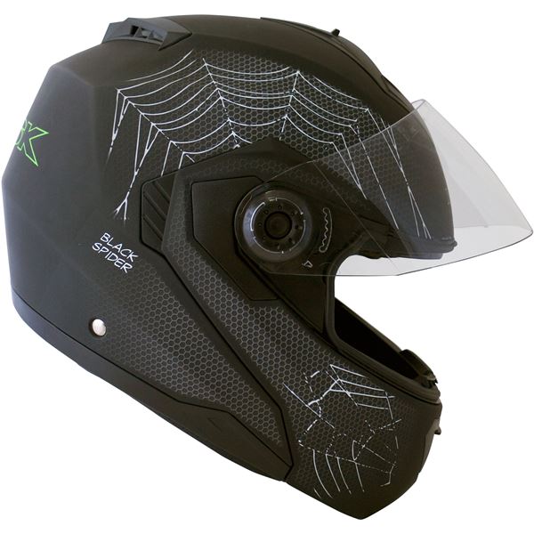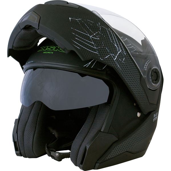 Casque modulable Black Spider noir mat Ksk taille S disposant d'un double écran solaire, d'une mentonnière ajustable et rabattable à 80°, d'un système d'aération supérieur et inférieur et d'un intérieur démontable et lavable. Sa boucle d'attache micrométrique vous garantie une stabilité et un confort optimale. Son sac de transport avec cordon serrable le rend facile et discret à transporter. Pour plus de sécurité, il vous est possible d'y ajouter des autocollants réfléchissants. Répond à la norme ECE R 22-05.
