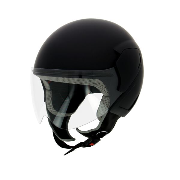 Modèle : Jet Couleur : Uni noir Taille : S (55-56cm) Le casque jet est pratique et léger et couvre les tempes en plus du sommet du crâne. Il offre une protection crânio-cérébrale. Dépourvu de mentonnière, il convient essentiellement en milieu urbain, à des vitesses peu élevées. Son champ de vision est élargi.