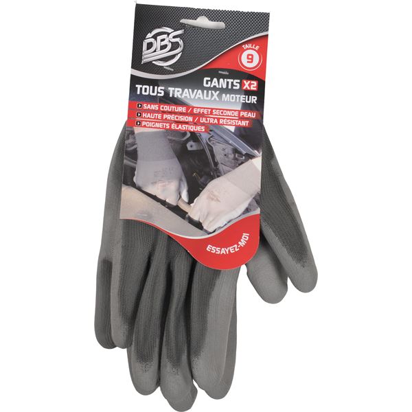 - Gants enduction polyuréthane sur support nylon, paume et bouts des doigts enduits, sans coutures